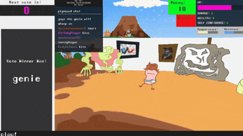 In Fighty Friends Online, you use Twitch chat to collectively guide your virtual peanut boy through a world filled with monsters, knowledge, and goodies! Fighty Friends Online is a massively multiplayer virtual pet RPG, allowing any number of your viewers to vote on the main character's actions. Defeat enemies, learn secret commands, and level up with your audience to decide on how our hero interacts with skeleton pirates, fanny packs, volcano demons, safety scissors, math, and more!